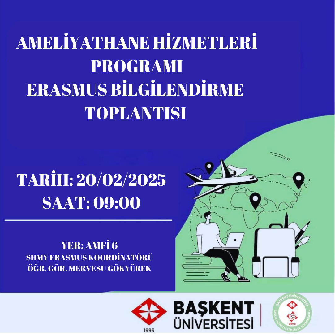 Ameliyathane Hizmetleri Programı Erasmus Bilgilendirme Toplantısı 20 Şubat 2024 Saat: 09.00'da Amfi 6'da gerçekleşecektir. Tüm öğrencilerimiz davetlidir.